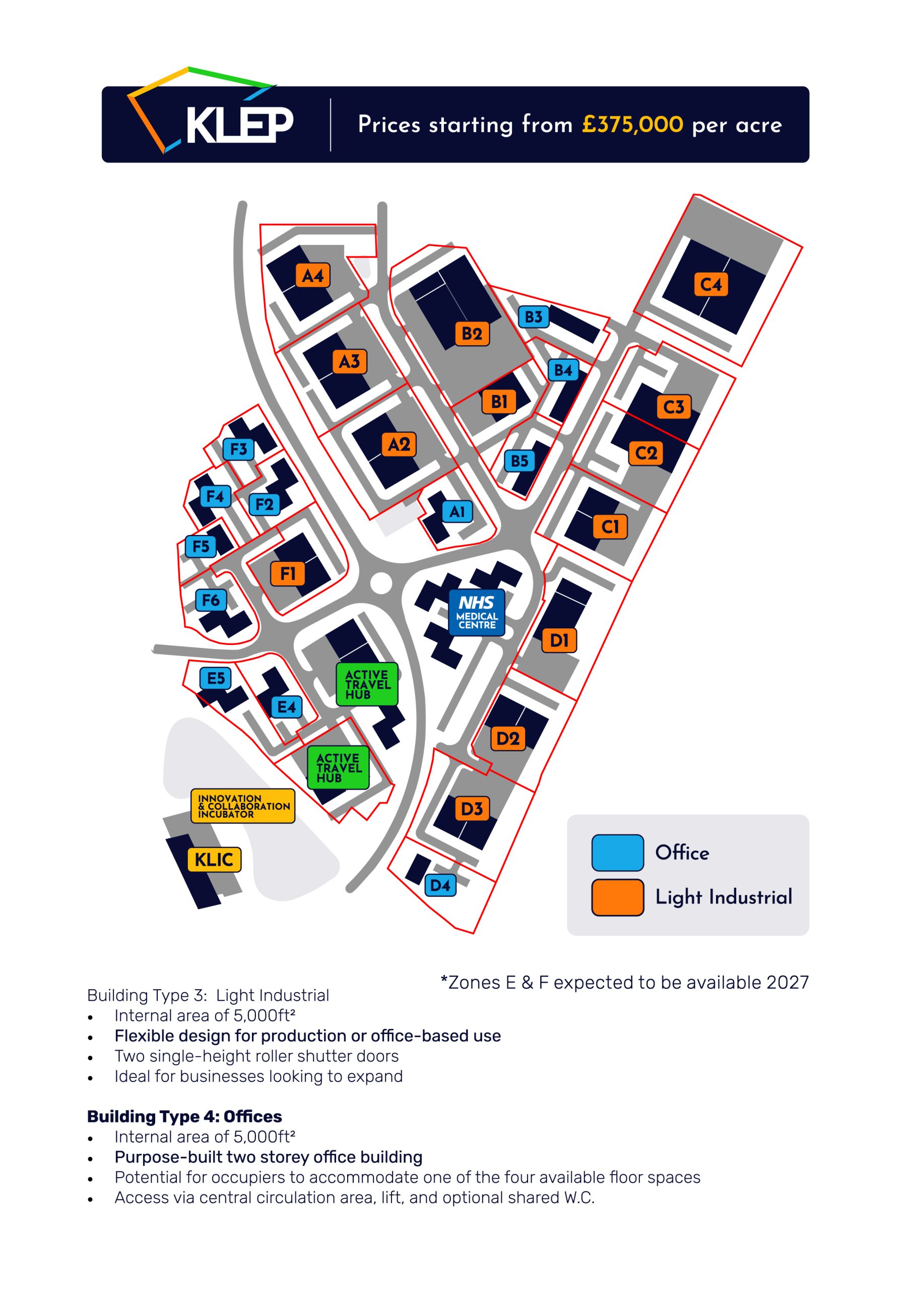 | B/3,4,5 | Plot available | 0.639 ha. 1.580 ac. | 6 x Office (5,000 ft² / 465m²) | 32-35 |